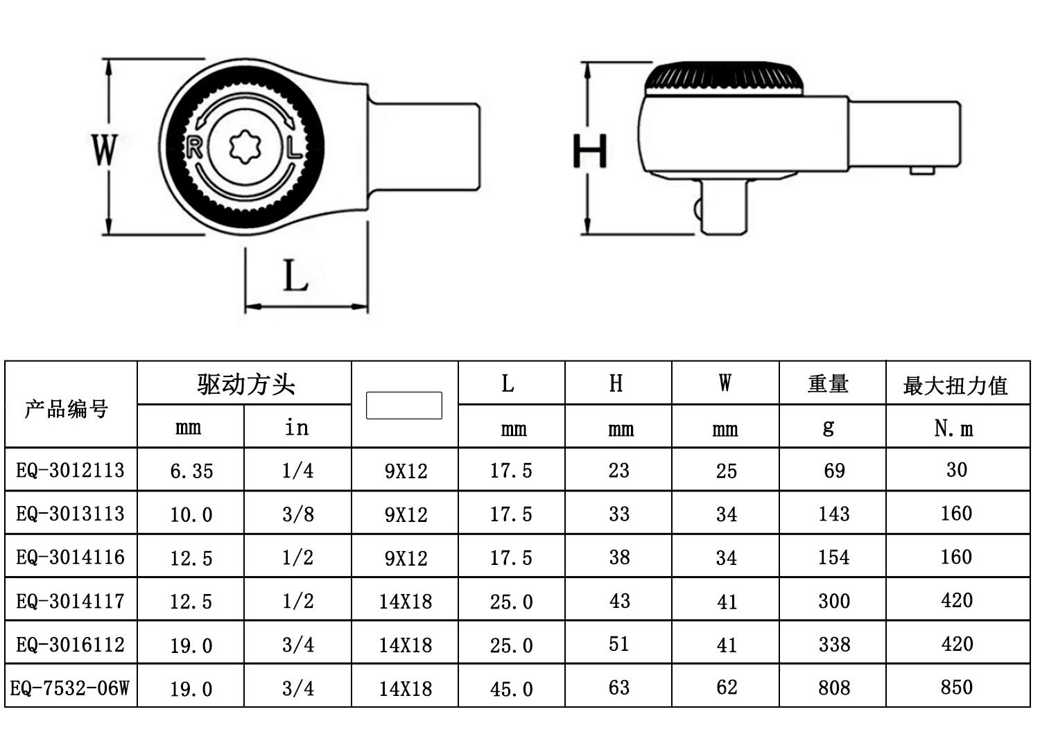 • 扭力范围:1/4-3/4
